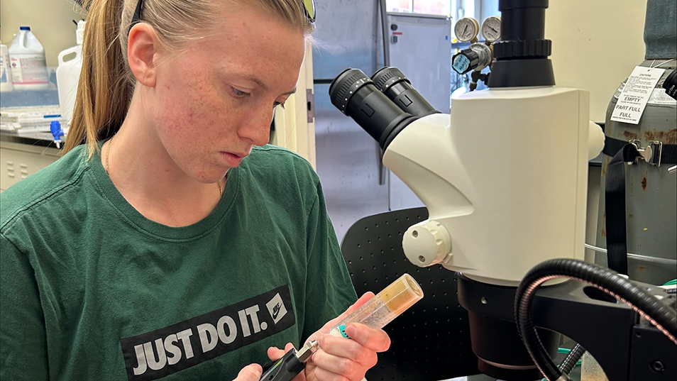 Kylie Johnson ’26, Roots & Shoots co-vice president and a marine science-biology major, was among the volunteers. She and other women volunteering said Goodall is who inspired them to enter male-dominated STEM fields.